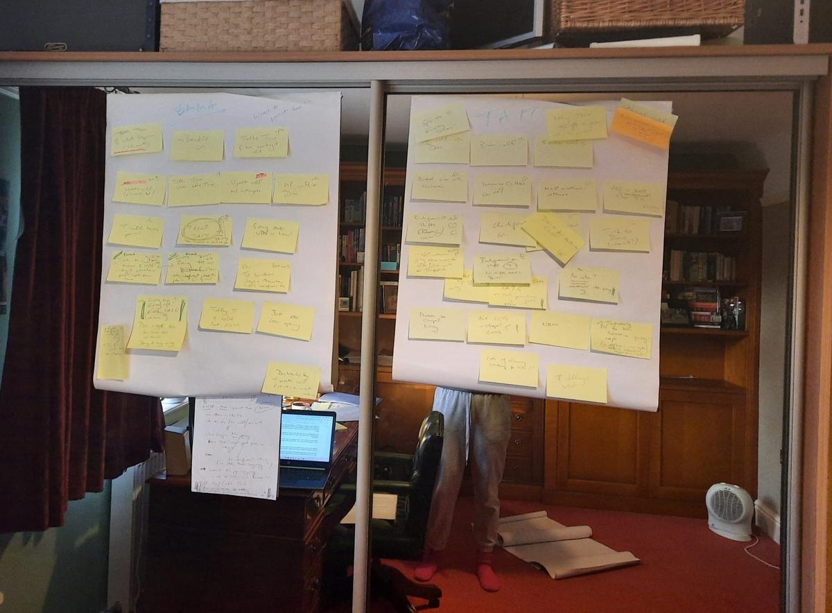 And yep, it was indeed an Octopus – three interweaving stories that needed plotting out and slotting in. You know the story: you’ve finally got that final eighth tentacles in the bath, sit back triumphantly, look round, and tentacle number one (or was it two, or three?) has escaped. Keeping it all in order looked something like this…
